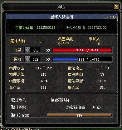 108级极品力弓 地狱统治者称号 技能点 510万