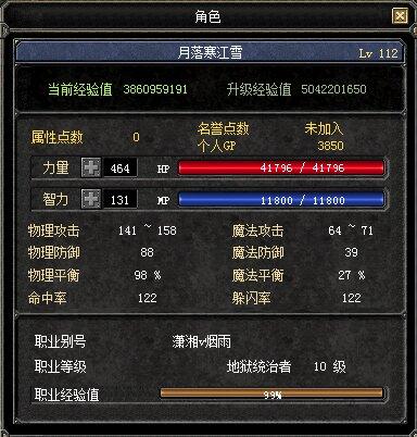 112级极品 战术 地狱统治者称号 技能点550万