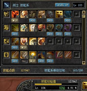 104战士剩余13万技能点